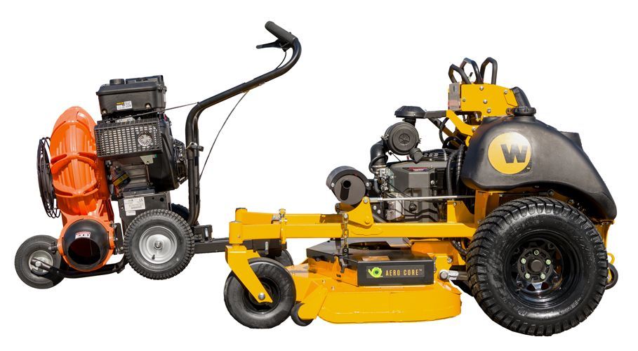 Increased productivity from your blower by using your mower's power to cover more ground faster